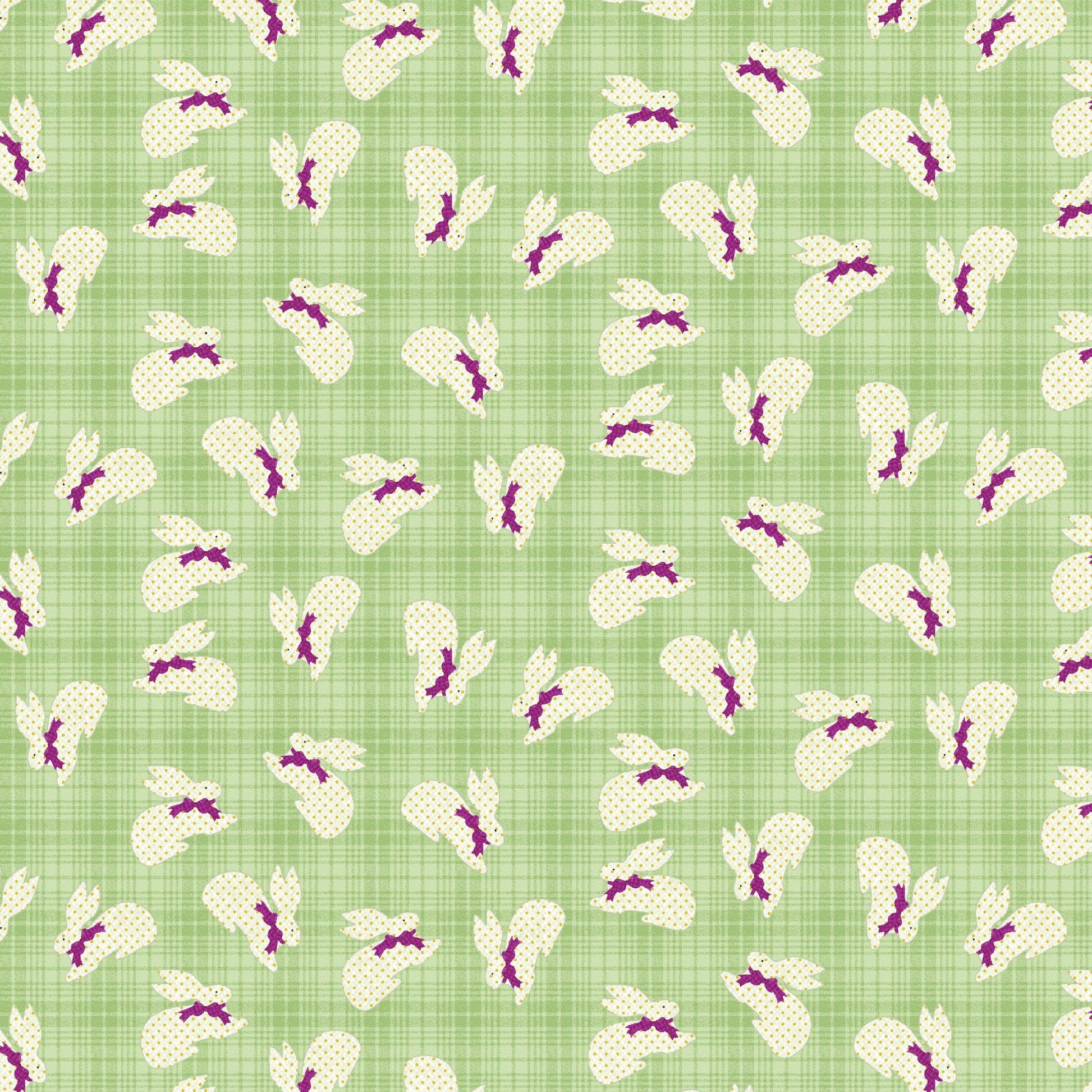 Benartex A Wooly Garden Bunnies Quilting Cotton Fabric- Light Green