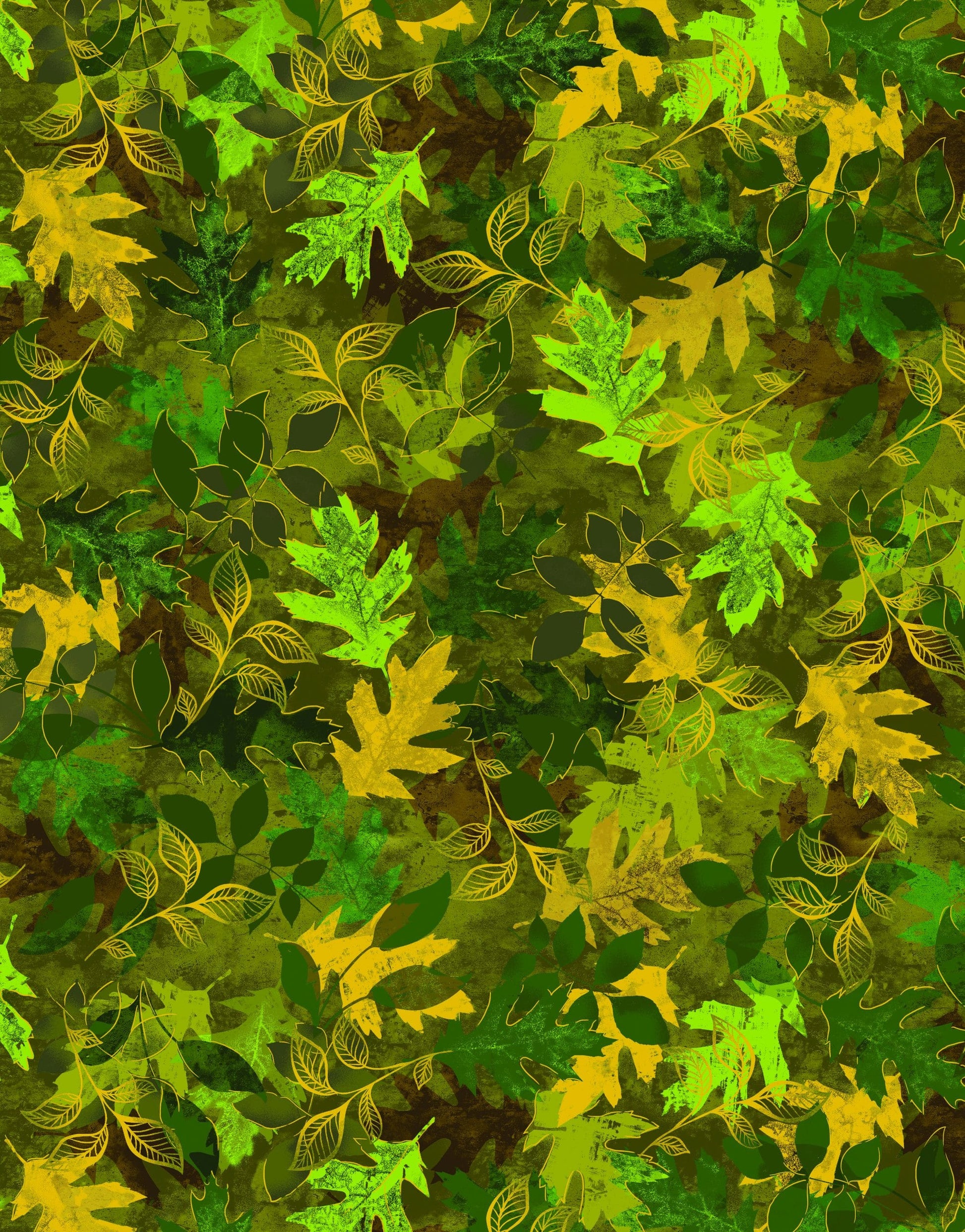 Benartex Autumn Comfort Flannel Leafy Splendor Quilting Cotton Fabric- Olive Green