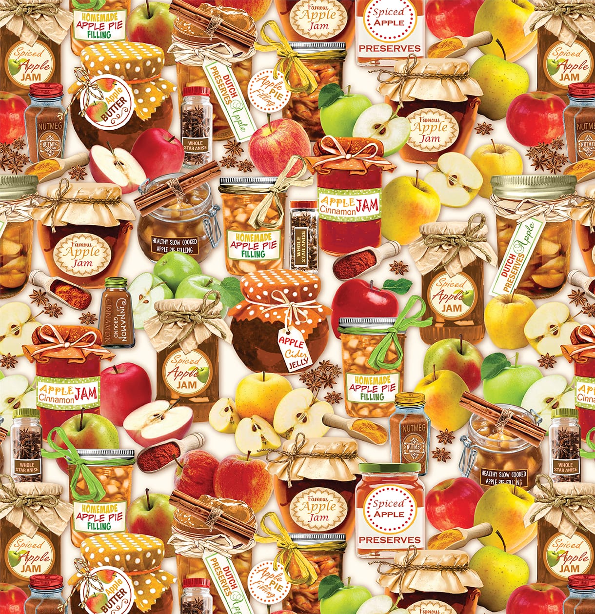 Benartex Cider House Harvest Preserves Quilting Cotton Fabric- Cream/Multi