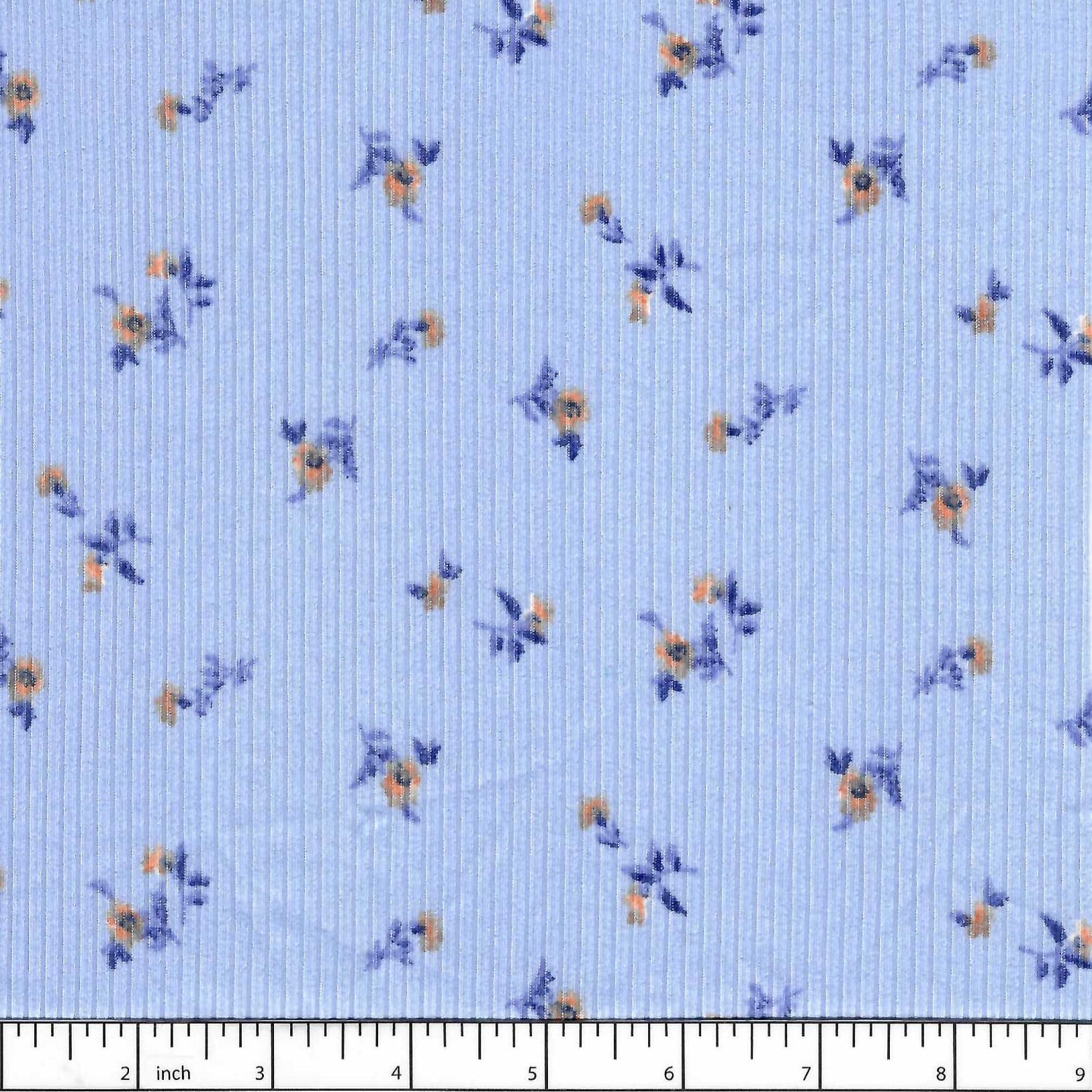 Hadassah Blue Floral Soft Rib Knit Fabric