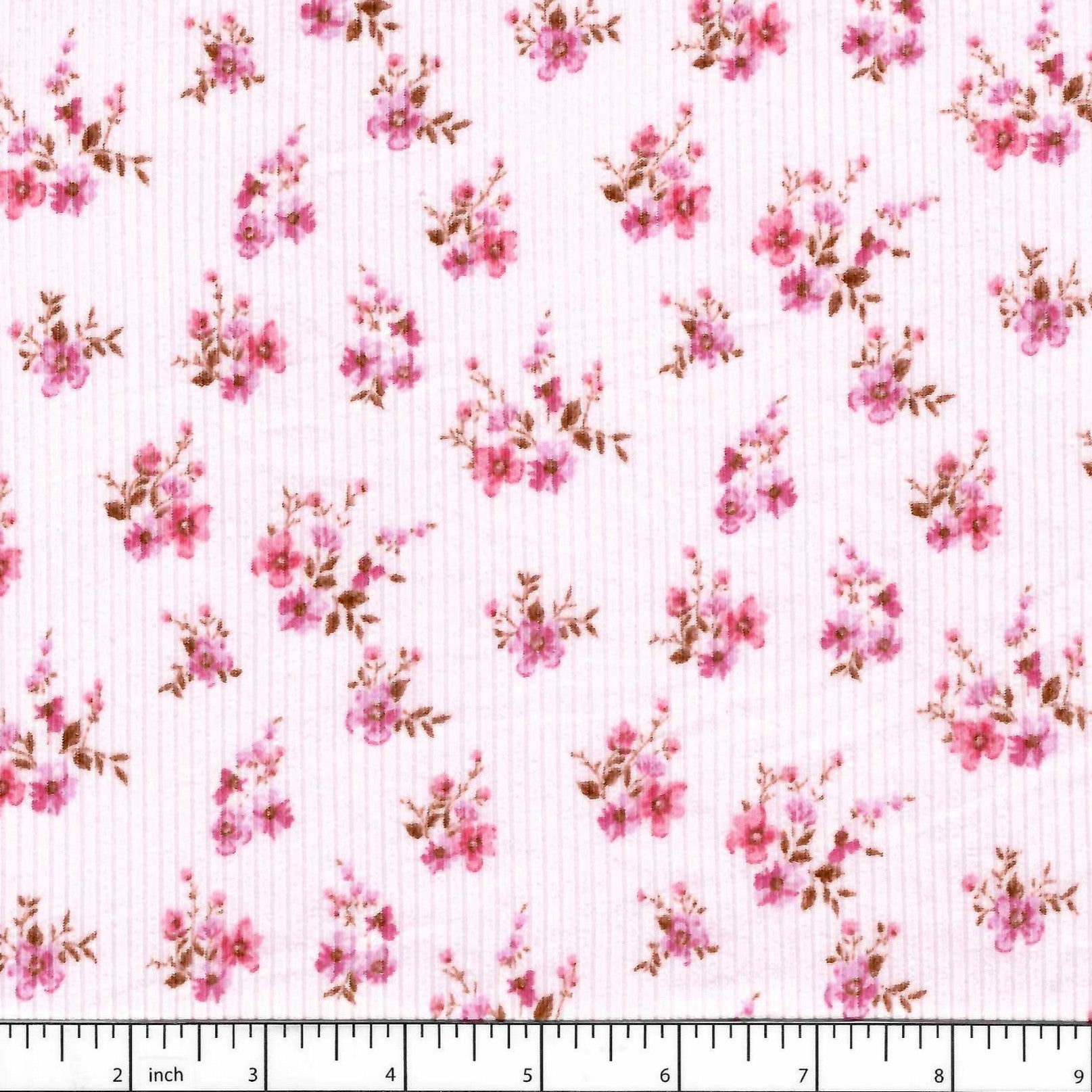 This Floral Ribbed Knit fabric has a ribbed design and pretty flowers.